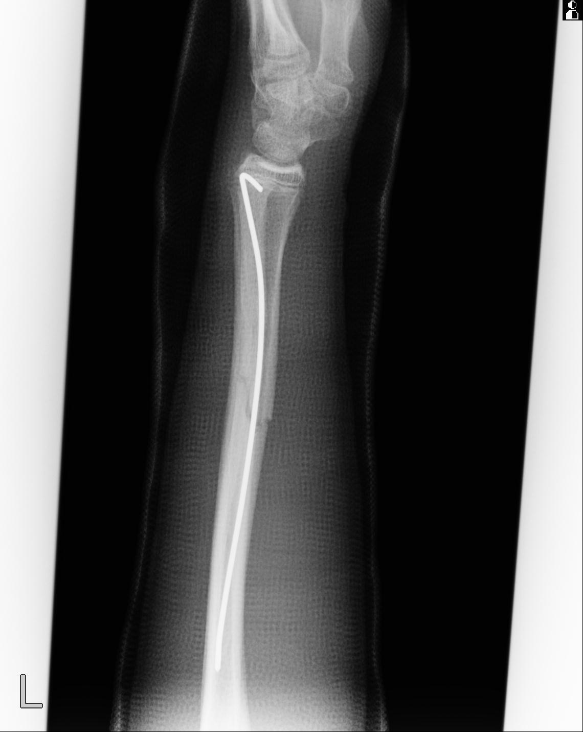 110211 1/6 1/8 左前腕 4R 15歳男性 橈骨骨幹部骨折