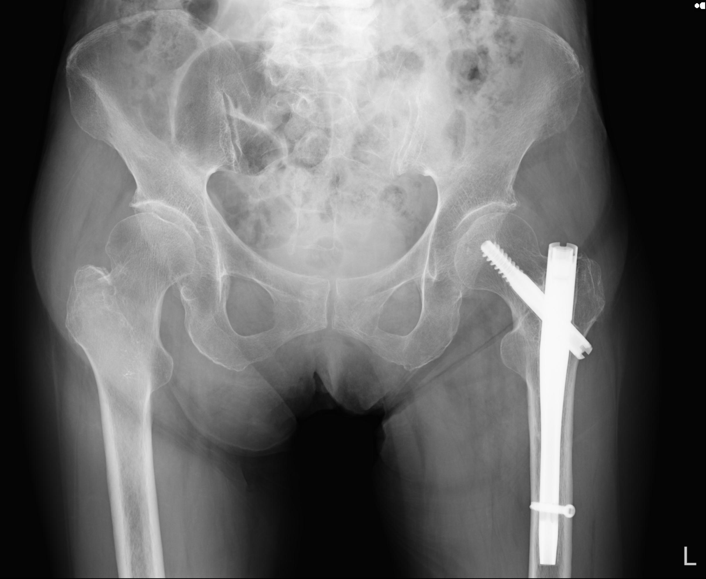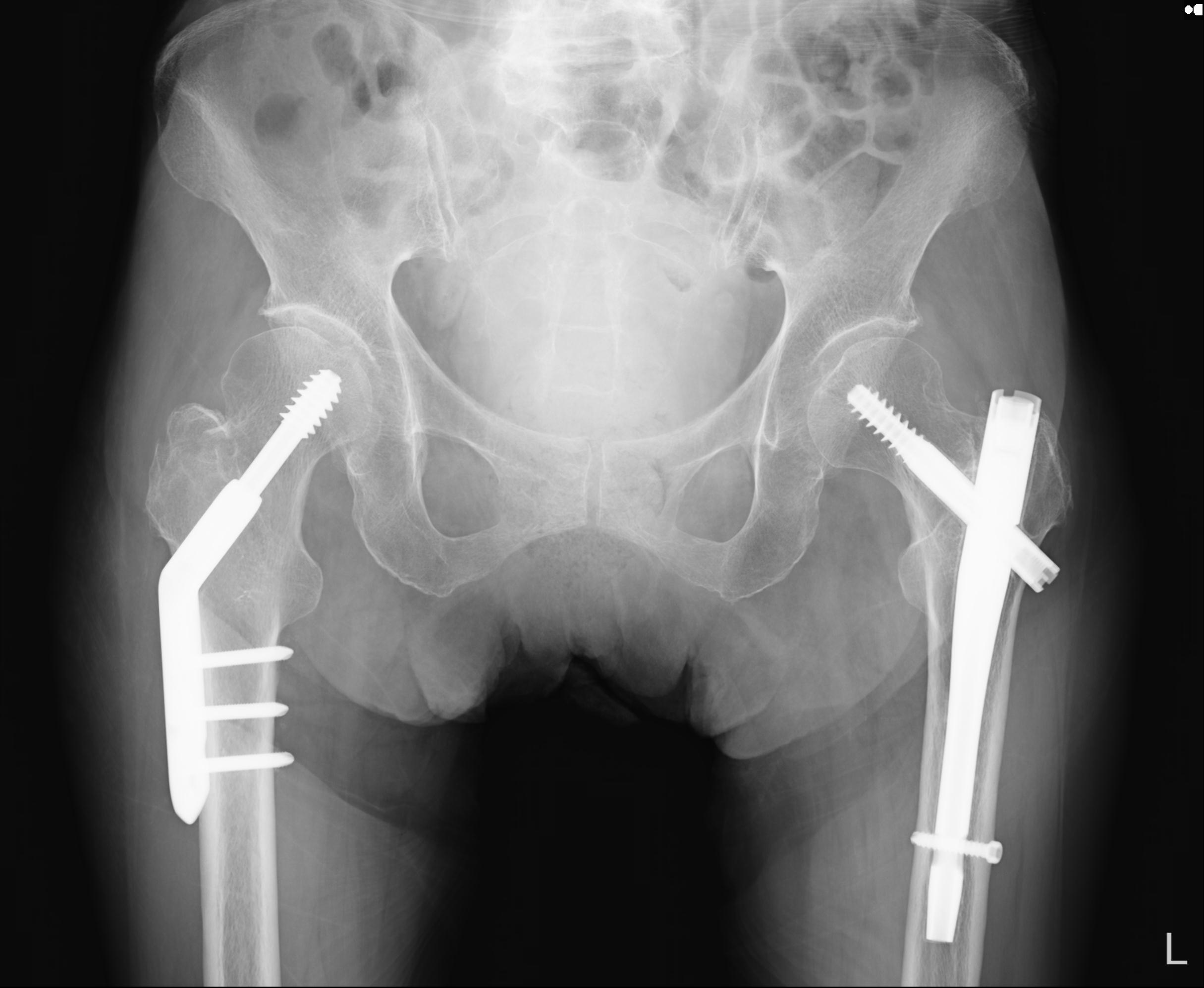 46666 1/28 両股正面+軸と 1/26 右手関節 2R 76歳女性 右転子部骨折